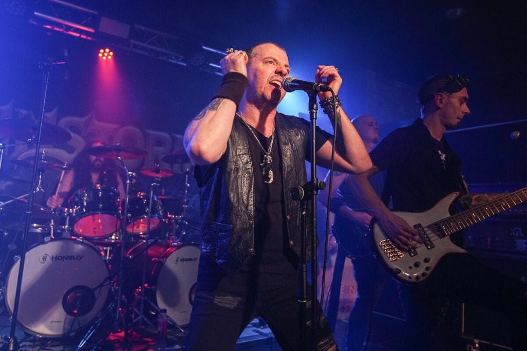 A las 23:50h comenzaba a sonar la intro y Brainstorm eran recibidos con júbilo en la sala Urban Rock Concert de Vitoria-Gasteiz, la veterana formación lleva desde finales de los años ochenta fieles a su estilo, esta ocasión visita de nuevo nuestro país para presentar su último trabajo ‘Midnight Ghost’, precisamente la potente “Devils Eye” que abre el álbum fue la primera en sonar, logrando una calurosa acogida por parte del público. La intensidad siguió en aumento con el segundo tema de la noche, “Worlds Are Comin’ Through”, todo un clásico de la banda que fue muy bien recibido.