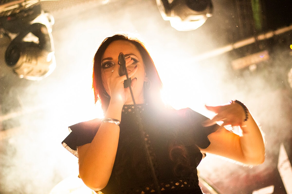 Abriendo la noche en la sala Mon, se encontraban Scarlet Dorn, un joven grupo de dark pop-rock gótico, que lleva por nombre el de la vocalista que comanda sus filas. Venían presentando su último trabajo editado, ‘Queen Of Broken Dreams’, tercero de su aún corta carrera. La escueta experiencia de la banda no mermó su calidad o presencia escénica, que se ganó algunos adeptos durante la velada del domingo. Aunque, en etilos de esta índole, la propuesta gana algo de gancho en directo, era de notar que su estilo era el que más desencajaba en el esquema de bandas, aun bebiendo influencias del mundo oscuro.