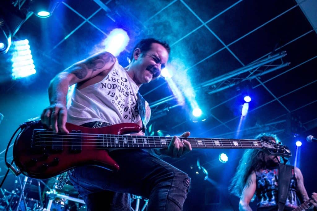 Poco tiempo después de retirar los enseres de Guadaña y preparar el terreno para la banda de Leo Jiménez (¡enorme la batería de Carlos Expósito!), todo estaba listo para que comenzara el plato fuerte de la noche. Sin más preámbulos de la cuenta, abrieron con una poderosa “Con razón o sin razón”, a la que le siguió su nuevo himno “Desde Niño”. Otra vuelta atrás a la memoria en la que los discos clásicos de heavy metal colmaban nuestras estanterías y nuestro tiempo para degustar cada nota que sonaba. ¿Se ha perdido esa sensación en la actualidad o es mi parecer?.
