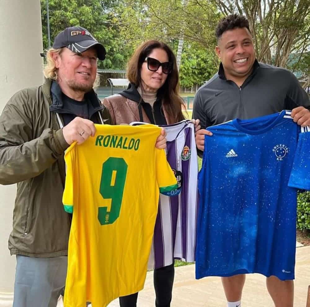 Como se aprecia en la imagen junto al escudo de la camiseta del Valladolid (la de rayas blancas y violetas del centro), está firmada, lo que la hace más especial. La presencia de esta camiseta no es casualidad, y es que Ronaldo es el presidente del club vallisoletano y, por ello, hace de embajador del conjunto castellanoleonense por todo el mundo con actos como este con, nada más y nada menos, que Adrian Smith (Iron Maiden).