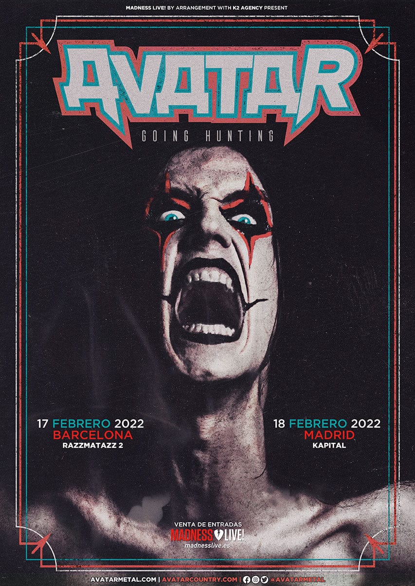 Los suecos Avatar han confirmado las fechas de su próxima gira por Europa para presentar en vivo las canciones de su último trabajo de estudio ‘Hunter Gatherer’. En su itinerario, tal y como avanzaron hace unos días, se incluía su visita a Madrid y Barcelona.