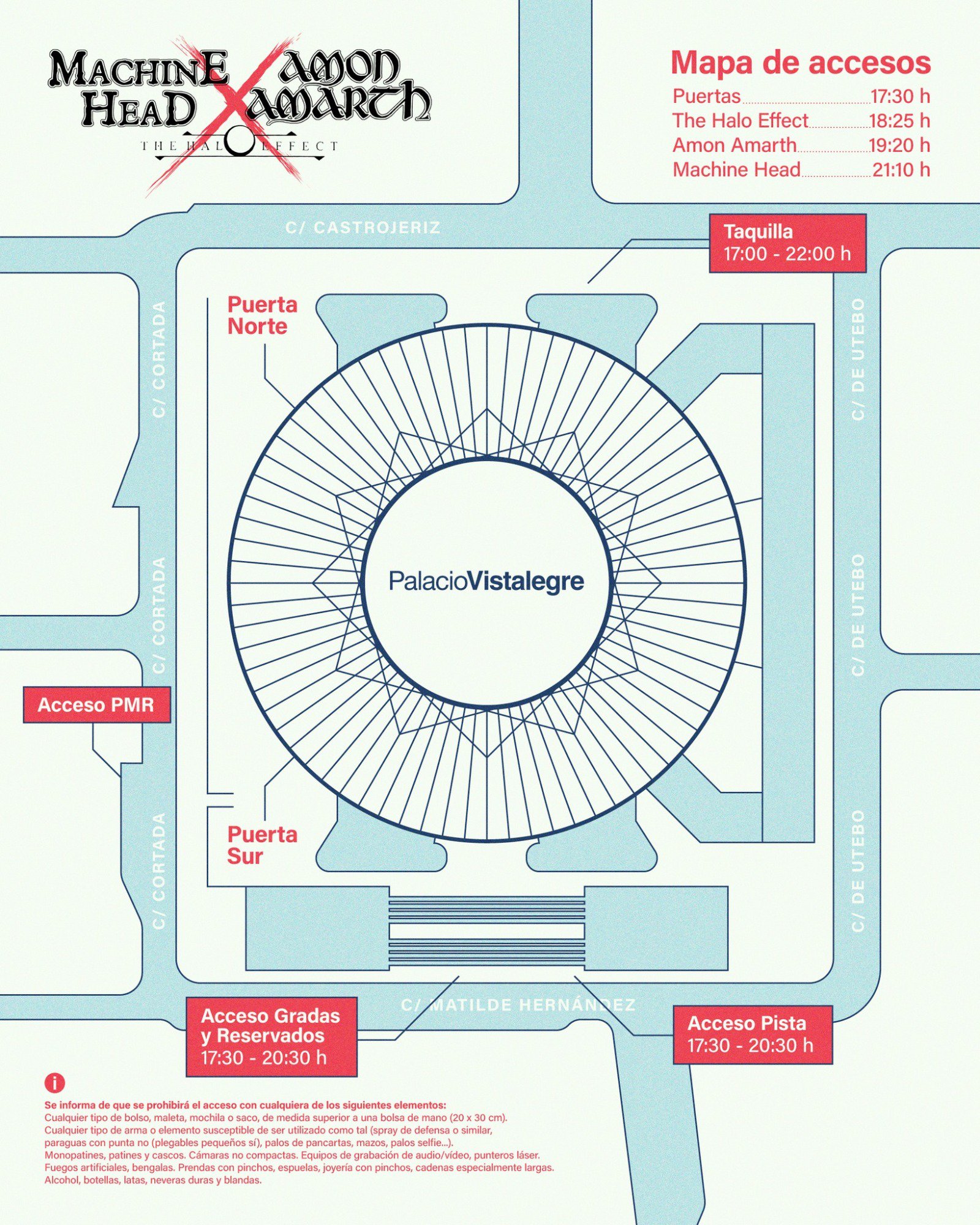 Después de todo el revuelo generado por el cambio de sala del concierto de Barcelona, que pasará del Sant Jordi Club a la sala Razzmatazz -y, por tanto, toda la producción de la gira, que es uno de los atractivos de la misma como pudimos comprobar al ver este concierto en Viena hace unas semanas- no se podrá disfrutar en la ciudad condal. Estos son los horarios de Amon Amarth y Machine Head en España para sus tres fechas en la mencionada Barcelona, Madrid y, por último, A Coruña el jueves 6 de octubre, viernes 7 de octubre y sábado 8 de octubre respectivamente: