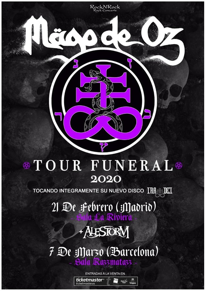 Mägo de Oz sigue confirmando fechas de conciertos para el próximo año. Pero harán dos conciertos muy especial a los que han llamado «Tour Funeral 2020» en la que interpretarán íntegramente su último trabajo de estudio «Ira Dei». Os informamos de uno de estos conciertos que se celebrará en La Riviera de Madrid junto a los escoceses Alestorm, pero también llevarán este formato a la ciudad Condal.