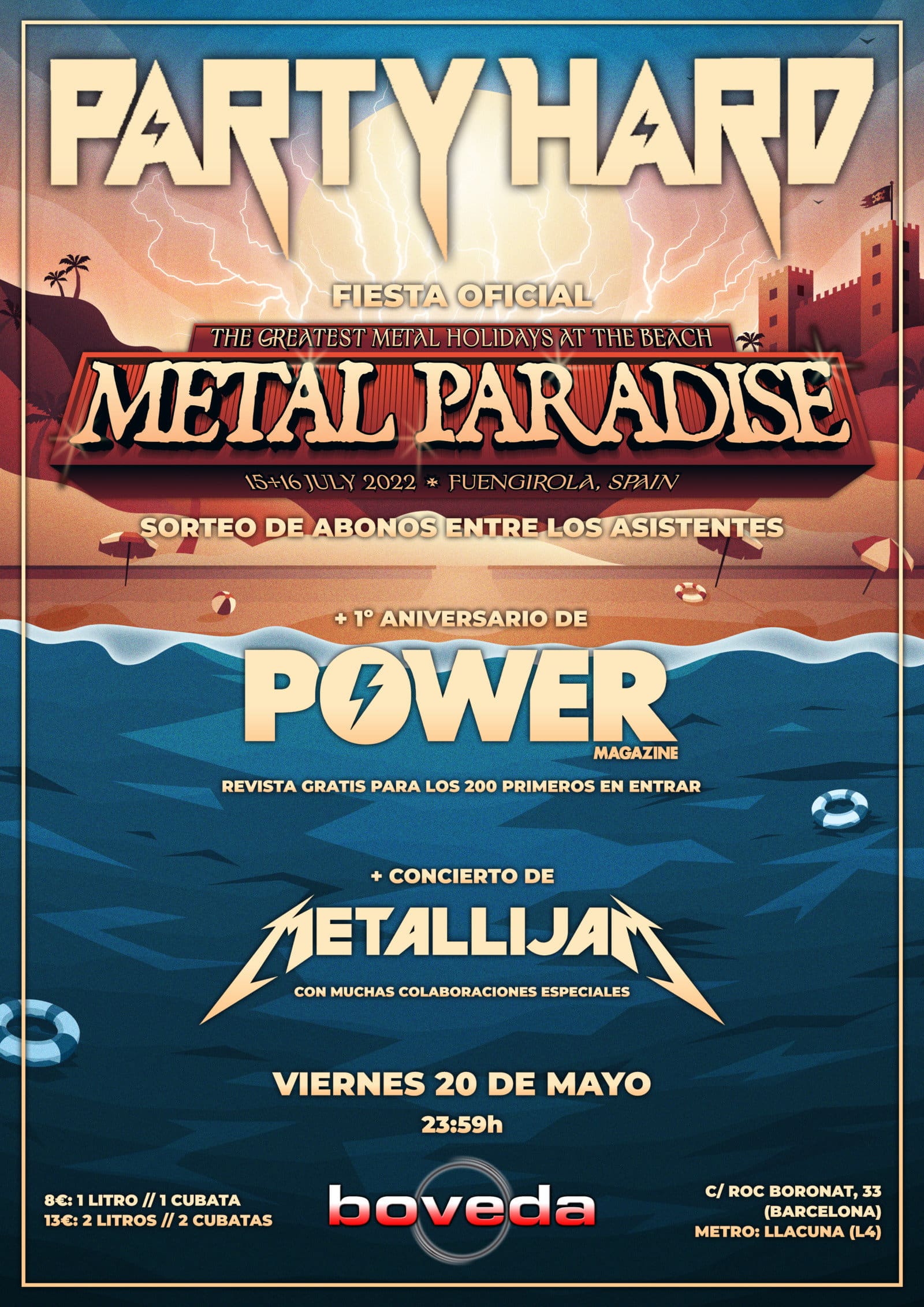Este Party Hard servirá, además de para ver actuar a músicos reconocidos como los citados (quienes han mandado un mensaje especial para los fans que acudan a la fiesta que puedes ver más abajo), como fiesta principal del Metal Paradise en Barcelona con el evento más grande para presentar el festival que se hará en cuanto a sus fiestas oficiales en toda España. Por ello, habrá sorteo de abonos entre los asistentes a la fiesta.