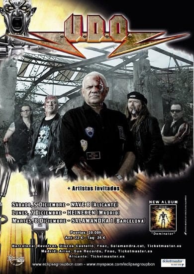 Siempre con la inestimable ayuda de la promotora Eclipse Group, The Metal Circus invita a cinco de sus lectores/as a que asistan sin pagar un euro al concierto que ofrecerán U.D.O. el próximo  el próximo 8 de Diciembre en la Sala Salamdra 1 de Barcelona. Presentarán su nuevo disco “Dominator” publicado por AFM Records el 21 de agosto y les acompañarán los suizos MAXXWELL.