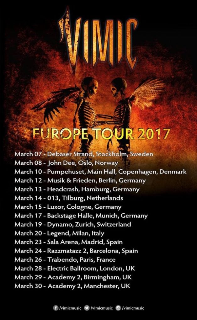 VIMIC, la nueva banda liderada por el que fuera batería de SLIPKNOT, Joey Jordison, iniciarán una gira como cabezas de cartel por Europa el próximo mes de marzo. Este tour dará comienzo el 7 de marzo en Estocolmo, y finalizará en tierras británicas, en Manchester, el 30 del mismo mes.